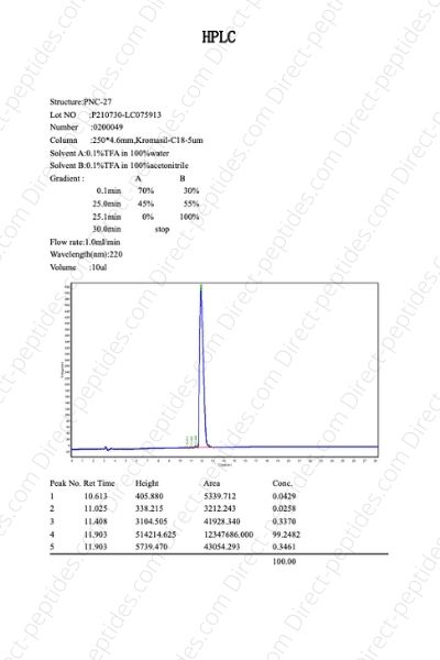 Buy PNC-27 peptide Greece with 99% purity from Direct Peptides, made for scientific research. Each product is third party tested to ensure high quality and reliability, giving researchers confidence in their results. Count on our peptides for safety, accuracy, and consistent support in your work.