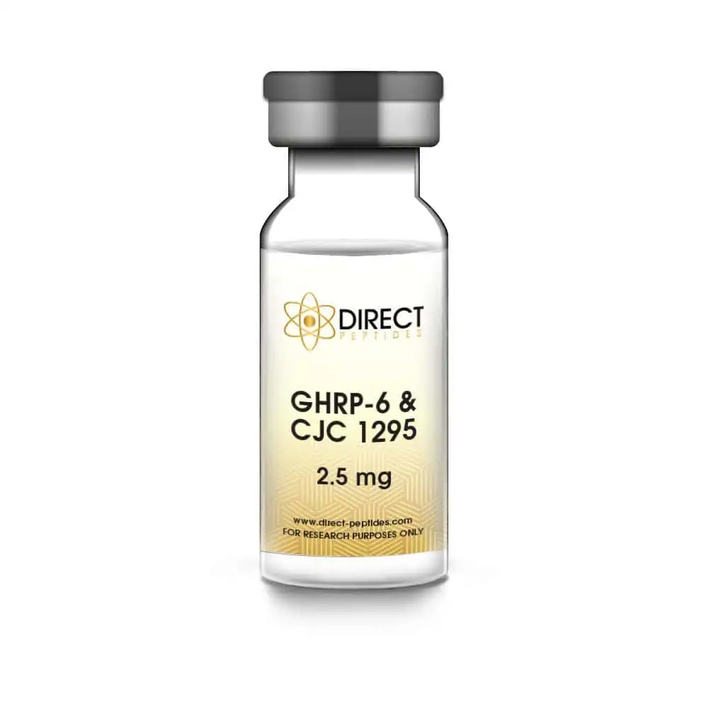 Buy GHRP-6 CJC-1295 DAC Blend Peptide Vial (2.5mg), a synergistic combination of two potent peptides, designed to enhance growth hormone release and promote overall anabolic effects.